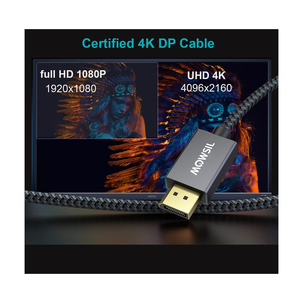 Experience crystal-clear visuals and seamless connectivity with the Mowsil DP 8K 60Hz 1.4 Cable. Designed with cutting-edge technology, this braided 1-meter cable ensures top-notch performance for all your devices.